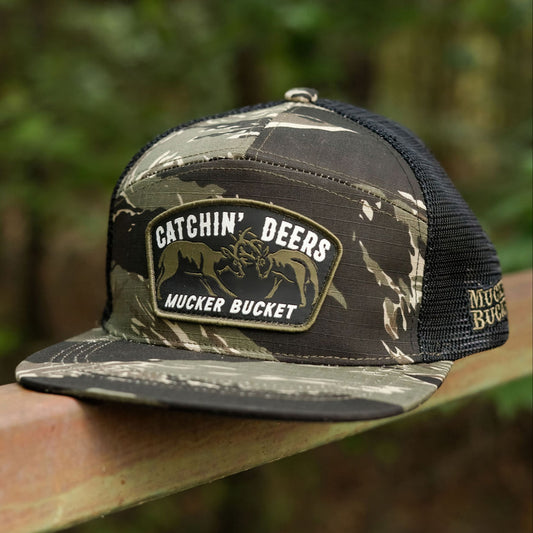 Catchin' Deers Tiger Stripe Camo Trucker Bucket