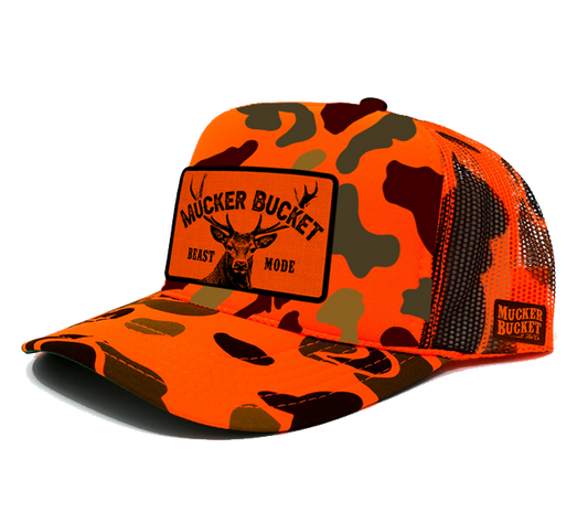 "Beast Mode" Orange Camo Trucker Bucket